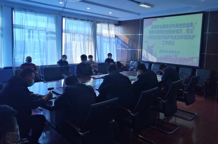 会议传达了《泉阳林业局持续推进自然保护地生态环境问题整改工作方案的通知》;通报了中央第七生态环境保护督察组向国家林业和草原局反馈督察情况。