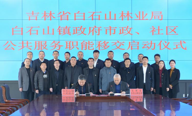 3月31日,白石山林业局与白石山镇政府、黄松甸镇政府举行市政社区公共服务职能移交启动仪式。副局长陈长军代表白石山林业局分别与白石山镇政府和黄松甸镇政府负责人签定了市政社区公共服务职能移交确认书。确认书签定后,自2021年4月1日起,白石山林业局局址和黄松甸林业小区的市政社区公共服务职能,全部移交给白石山镇政府和黄松甸镇政府负责管理。