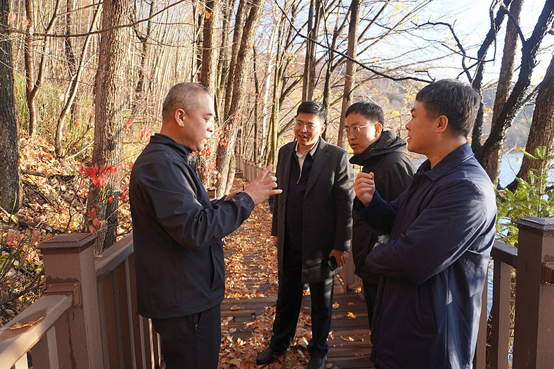 王雪峰在龙湾玛珥湖景区一标段建设现场和龙湾林场场区,踏察了已经建设完工的景区环湖栈道,详细听取了景区规划、投资建设和未来运营情况的汇报,并就景区下一步规划及运营与随行人员进行了交流,现场协调解决项目推进过程中的难点问题。他强调,三岔子林业公司要围绕建设践行“两山”理念试验区,紧盯时间节点,高质高效推进龙湾玛珥湖景区建设,着力推动康养文旅项目与松花江沿线旅游资源融合发展,全力打造林区经济增长新引擎。