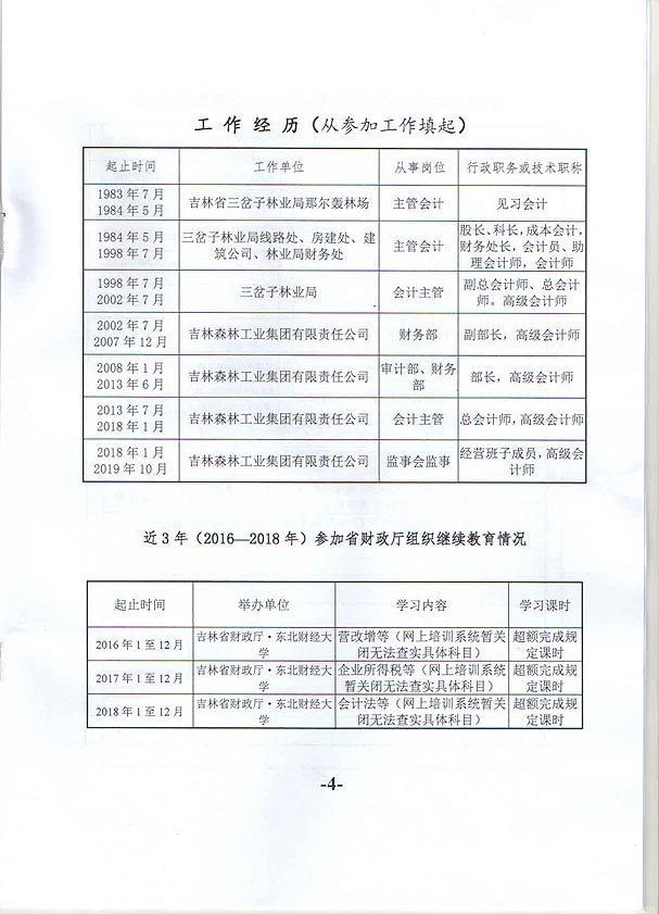 吉林森工集团2017、2018年度企业负责人薪酬信息披露