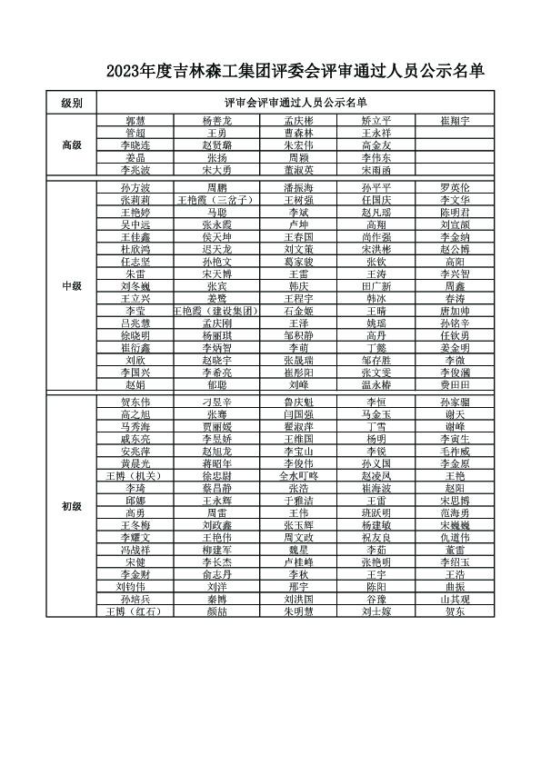 附: 2023年度吉林森工集团评委会评审通过人员公示名单