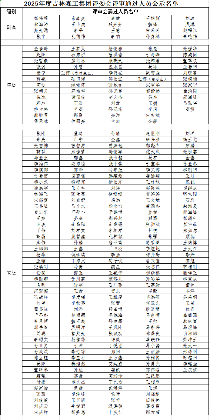 附: 2025年度吉林森工集团评委会评审通过人员公示名单