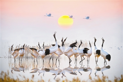 二、首届国家公园论坛召开,习近平总书记致贺信寄予殷切期望 8月19日至20日,第一届国家公园论坛在青海省西宁市举行。习近平总书记致信祝贺论坛开幕,指出:中国实行国家公园体制,目的是保持自然生态系统原真性和完整性,保护生物多样性,保护生态安全屏障,给子孙后代留下珍贵的自然资产。全国政协副主席陈晓光出席开幕式,中央和国家机关有关部门、国家公园体制试点省份、相关研究机构负责同志,相关国家及国际组织代表,专家学者代表等约450人出席论坛,讨论形成八条“西宁共识”。论坛由国家林业和草原局(国家公园管理局)、青海省人民政府共同主办。  位于江苏省盐城市的中国黄(渤)海候鸟栖息地(第一期)被联合国教科文组织列入世界遗产名录。鹤鸣朝阳,摄于盐城湿地珍禽国家级自然保护区。 孙华金摄
