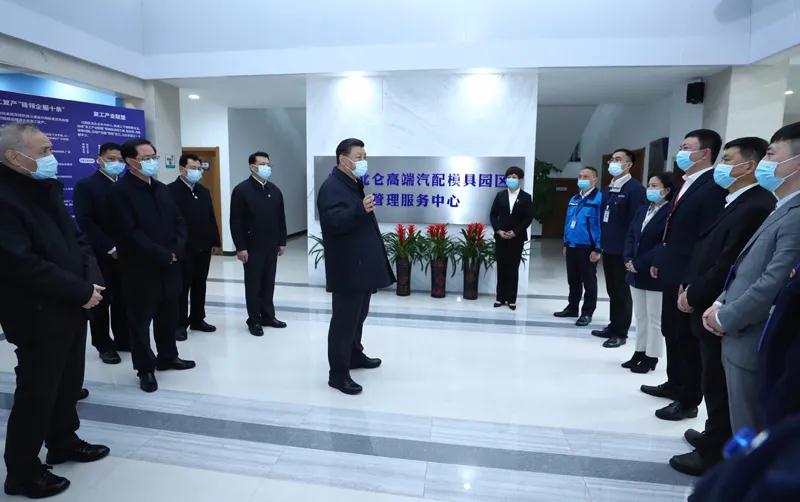 3月29日至4月1日,中共中央总书记、国家主席、中央军委主席习近平在浙江考察。这是3月29日,习近平在宁波北仑大碶高端汽配模具园区考察中小型民营制造业企业宁波臻至机械模具有限公司,听取企业生产经营及复工复产情况介绍。新华社记者鞠鹏 摄