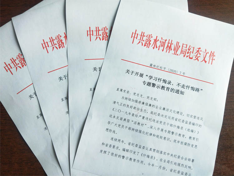近期,露水河林业局纪委深入贯彻落实省纪委监委和集团纪委的决策部署,充分运用省纪委监委编印的《二〇一九年查结严重违纪违法党员干部忏悔录(选编)》这本反面典型“活教材”,深入开展了“学习忏悔录、不走忏悔路”专题警示教育,时刻告诫党员干部要自警自省,决不踩“红线”、越“雷池”、闯“禁区”,不断增强拒腐防变的免疫力,筑牢思想道德防线。