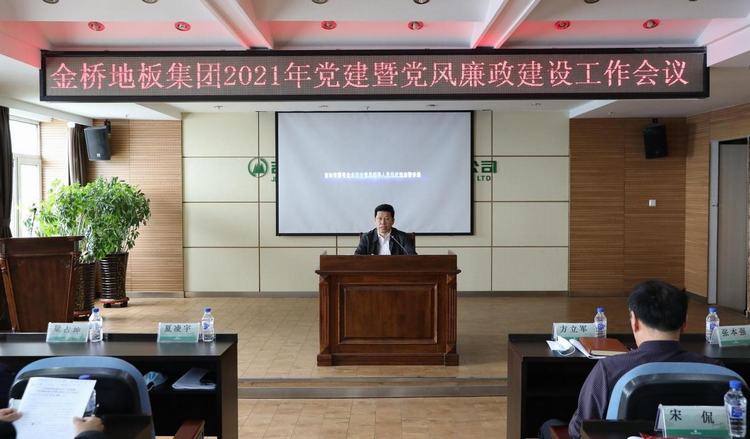 5月28日,金桥地板集团召开2021年党建暨党风廉政建设工作会议,总结2020年金桥集团党建和党风廉政建设及反腐败工作,分析形势,安排部署2021年工作任务。