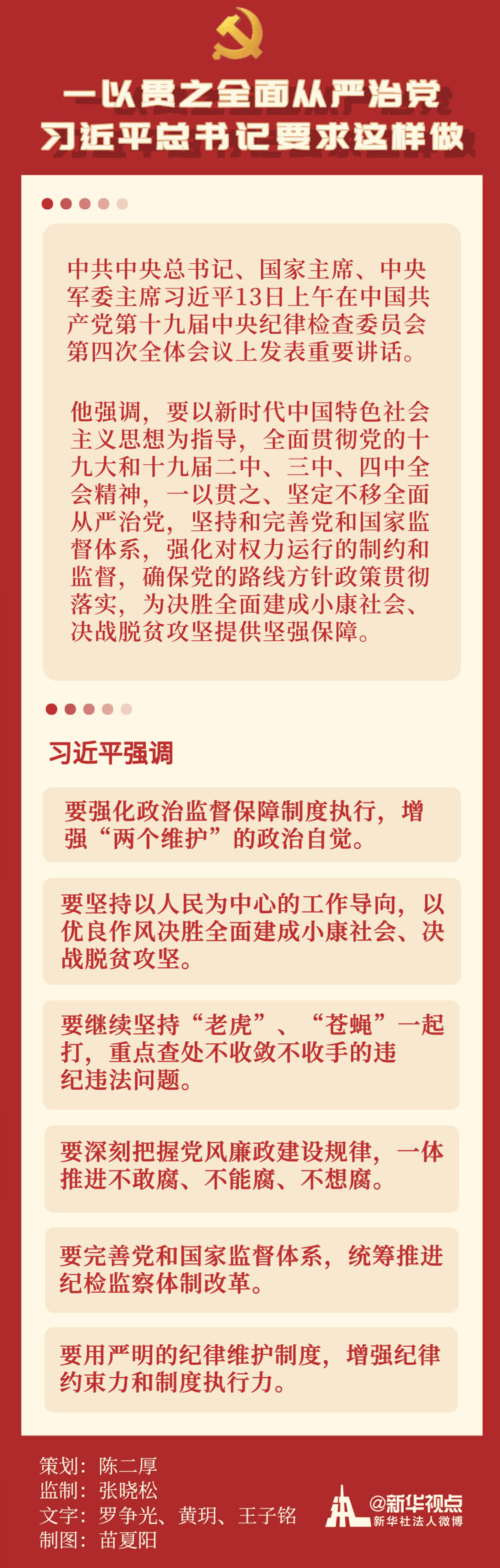 一以贯之全面从严治党——解读习近平总书记在十九届中央纪委四次全会上的重要讲话