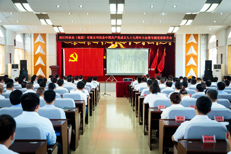 九十九年栉风沐雨,九十九年朝乾夕惕,九十九年砥砺前行。为歌颂九十九年来党的丰功伟绩,表彰先进,激励公司广大干部职工积极投身公司振兴崛起高质量发展的建设中,6月29日上午,松林公司党委在机关六楼会议室举行纪念中国共产党成立九十九周年大会暨专题党课报告会。松林公司党委书记黄吉文出席会议,并以“当好新时代的答卷人”为题作党课报告。会议由松林公司党委副书记、纪委书记赵宝才主持,松林公司领导班子成员、党委委员、副处级以上党员领导干部、党务工作者、机关所有党员、松江河森林公安分局党委和离退休管理处党总支所属各支部书记以及公司党委预备党员和转正一年内的党员共计300余人参加会议。