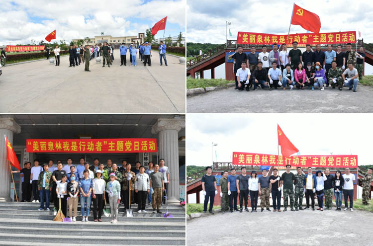 活动当天,泉阳林业局机关党工委还组织开展“美丽泉林,我是行动者”主题活动。党委书记、局长胡建荣同志及局其他班子成员分别以普通党员身份到所在党支部参加党日活动。在机关党工委的带领下,局机关第二、第四党支部同泉阳泉饮品有限公司部分党员干部、泉水森林资源管护大队党支部一同对泉阳湖岸边杂草、白色垃圾、枯死绿化苗木进行清理;局机关第一、第三党支部对局址广场、机关门前、花坛周边进行清扫,机关全体党员同时行动,共同开展“卫生大清理、环境大净化”活动。 |