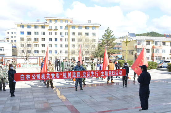 “植树添绿、党员先行”白石山林业公司开展义务植树主题党日活动