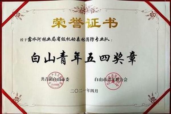 近日,露水河林业局省级机动森林消防专业队被共青团白山市委和白山市青年联合会授予白山青年“五四”奖章荣誉。