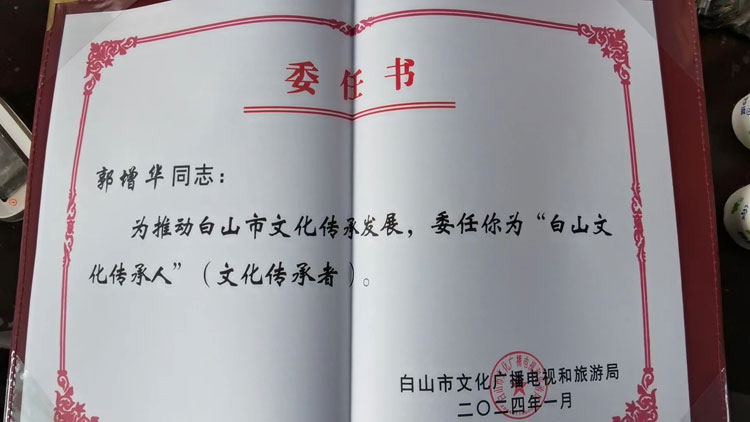 1月19日,白山市文化广播电视和旅游局组织召开了白山市文化传承发展工作发起动员会议。会议通报了第一批“白山文化传承人”评选情况,并为“白山文化传承人”颁发了委任书。露水河林业公司的刘平云、郭增华、王玉柱分别被委任为“白山文化传承者”“白山市文化工作者”。