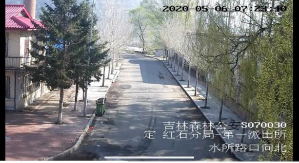 据红石森林公安分局第一派出所监控画面显示,早7点22分一只野生狍子闯入了沿江路水暖公司附近的监控摄像视野。狍子在这里欢快的时而奔跑、时而跳跃。当早起晨练的人们和环卫工发现它后,狍子才慌不择路地逃回不远处的山林。