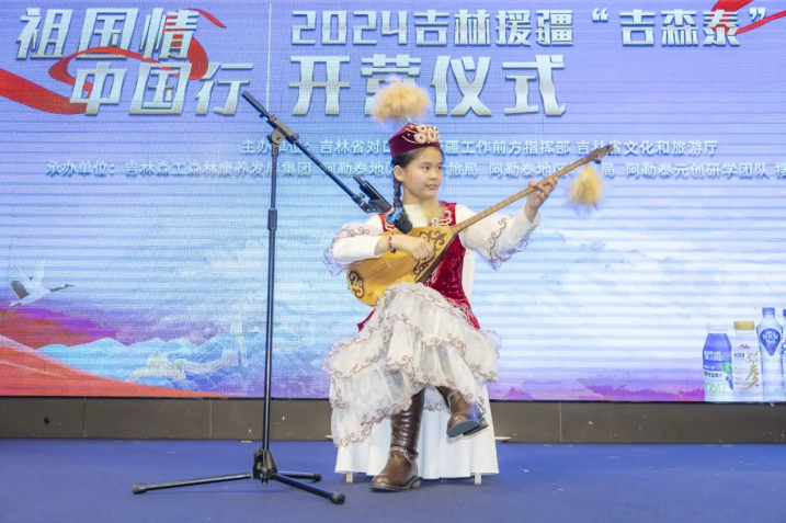 以文化促交流,画好民族团结“同心圆”。当天,以能歌善舞的新疆同学更是不遑多让。短短半个小时时间,冬不拉的乐器表演、舞蹈《科目三》、歌伴舞《黑走马》、独唱《幸福像金达莱一样》接踵上演。多彩艳丽的服装、欢快激昂的音乐、奔放活泼的舞姿,各族青少年的笑脸,瞬间将活动的气氛拉满。随着吉林和新疆两地同学们带来的节目一个个精彩上演,现场的观众喝彩声不断,不时爆出阵阵掌声。