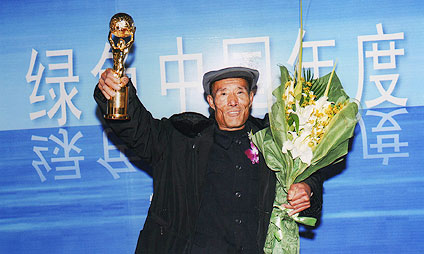 颁奖盛典上,唯一的“草根”,义务植树的赵希海老人,成为最耀眼的明星