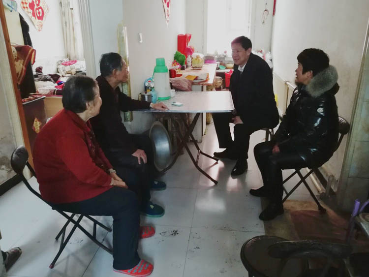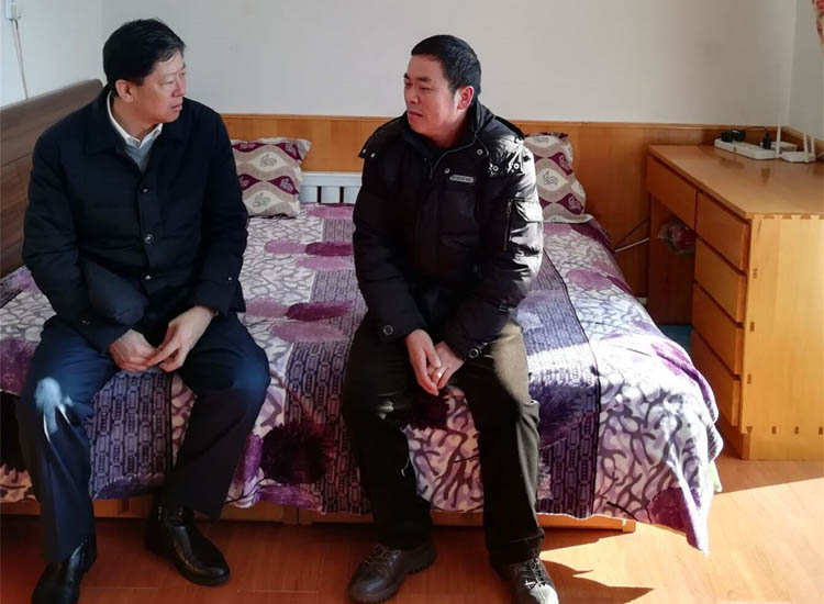 春节前夕,露水河林业局党委书记、局长赵伟与相关工作人员一起走访慰问老知识分子代表、老兵代表和困难职工。