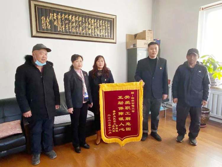 12月30日上午,松林公司森林资源管护大队职工吴天保、辛宝佳把一面绣有“关爱职工解危困 、互助保障暖人心”的锦旗送到了公司工会,吴天保激动地说:“感谢公司领导,感谢公司工会开展的职工互助保障活动,让我们在患病危难之时得到组织的关怀和帮助……”