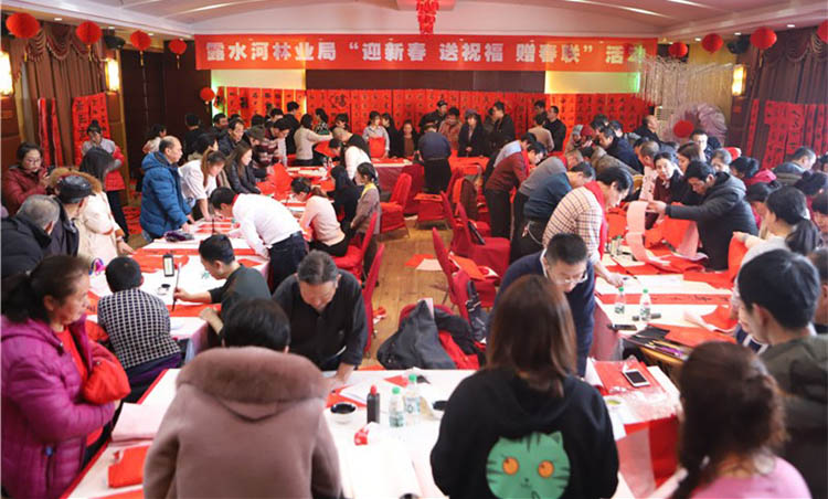 无联不成春,有福春更浓。1月5日上午,露水河林业局“迎新春送祝福赠春联”文化惠民活动在局宾馆举行。具有省书协会员资格的抚松县书法家协会露水河分会16名书法家挥毫泼墨,为林区居民书赠春联,送上一份浓浓的新春祝福和爱心。