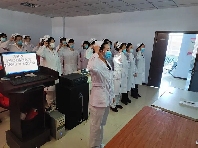 在第112个国际护士节来临之际,松江河林区医院于5月10日开展了5.12国际护士节主题活动。 活动首先播放了小视频,回顾了松林医院护理工作者工作中的点点滴滴,展示了一支敢担当、有作为、有温度的护理团队,在工作中团结奋斗、积极作为,用现实行动践行了白衣天使的初心使命。随后,在总护士长带领下进行了宣誓仪式。