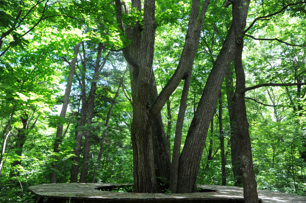 在原始森林景区,观光栈道蜿蜒曲折,曲径通幽,向广袤的林海中无限延伸。红松、蒙古栎、裂叶榆、白牛槭、色木槭等树木恣意生长,枝繁叶茂。团结树、天目树、迎客榆、松椴缠绵树形奇特,蔽日参天,每一株古树仿佛都在讲述一个动人的故事。软枣猕猴桃、山葡萄等藤蔓植物依树而生,叶绿藤长。最粗的一株古藤,竟然比手臂还要粗。