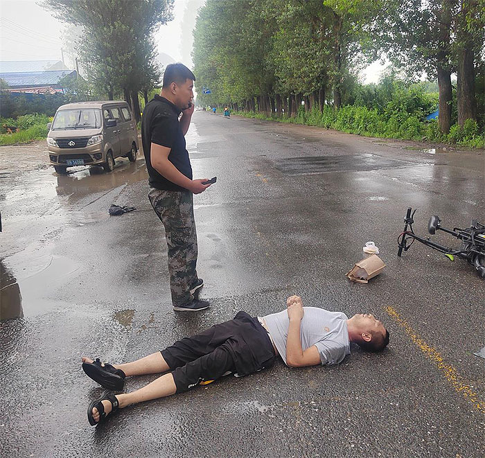 当时,倒地男子的意识模糊,额头出血,他的电动车倒在身边不远处,物品散落一地。见此情景, 3人立即上前查看。田宇博轻拍该男子右臂,询问其身体状况。在多次询问该男子没有回应后,他迅速拨打110报警电话,并呼唤同伴拨打120急救电话。 此时正值下班高峰期,车流量极大。为避免造成二次事故及交通堵塞,3人站在倒地男子前后两侧,指挥过往车辆绕行避让。大约4分钟后,辖区民警赶到事发现场。这时,该男子清醒过来,经询问得知,受降雨影响,他的电动车打滑,不慎跌倒。田宇博等人协助民警搀扶男子,将其转移到路边。与民警完成交接后,3人离开了事故现场。 受伤男子对3人的无私援助表达了感谢,民警也对3人见义勇为的举动表示了赞许。 |