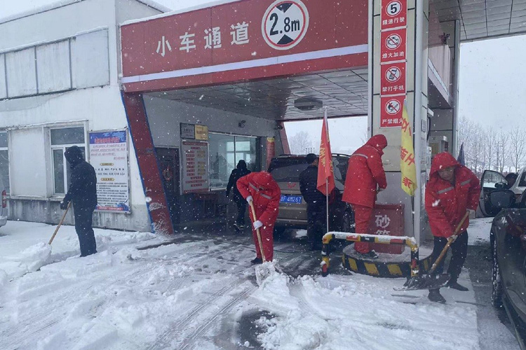 物资公司在扎实做好清雪工作的同时,密切关注天气变化和气象预警,采取灵活作业方式,加大降雪天气清扫力度,努力做到加油场地、车道、油罐区无积雪、无残水、无结冰,全力做好加油站安全保障工作。