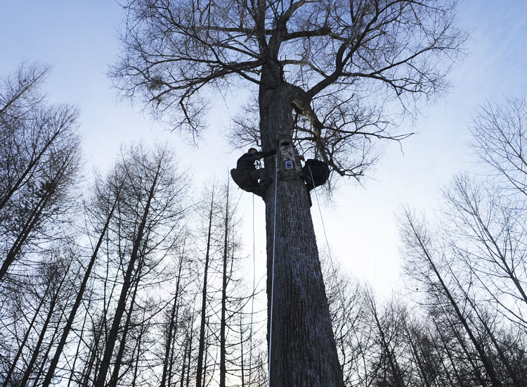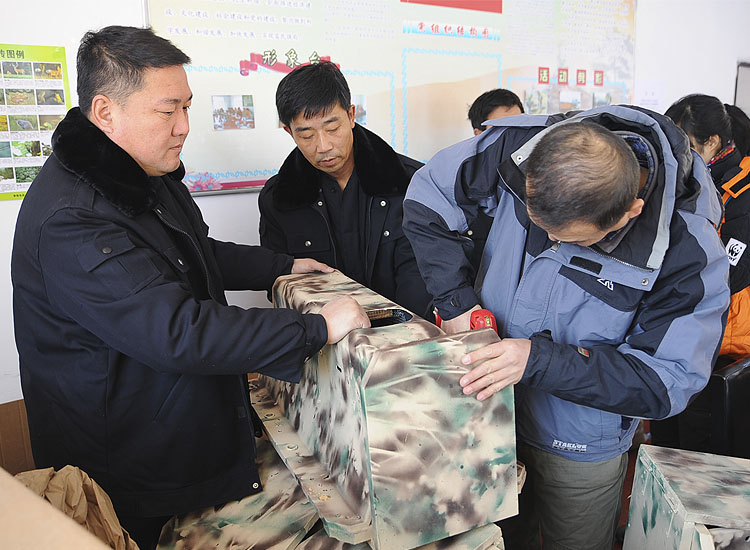 近年来,泉阳林业局不断加大泉阳湖生态保护力度,成立了泉阳湖水上管护站和泉阳湖野生动植物保护站,泉阳湖区生态环境得到极大改善,吸引了中华秋沙鸭、绿头鸭、苍鹭、鸳鸯等众多珍稀水鸟在此繁衍生息。 为给珍稀水鸟提供更多更好的栖息巢穴,优化水鸟生存环境,1月9日,世界自然基金会东北办公室主任、中华秋沙鸭保护专家刘培琦一行3人,趟着齐膝深的积雪,冒着零下20多度的严寒,亲临泉阳湖为珍稀水鸟筑巢安家。 此次巢箱安装为公益行动,是泉阳林业局通过与鸟类保护专家联系,争取到由通用汽车公司利用废旧电瓶外壳改造,并捐赠给世界自然基金会的10个仿生态人工巢箱。其中5 个大的为中华秋沙鸭巢箱,5 个小的供鸳鸯栖息,全部安装在泉阳湖区水鸟聚居地周边树木上。巢箱内部箱壁安装有网状攀爬层,可供新生雏鸟攀爬跳出。 专家组和泉水森林资源管护大队工作人员冒着三九严寒,经过两天艰苦工作,终于将所有巢箱安装完成。下一步,泉阳林业局将按照专家组指导,持续开展中华秋沙鸭栖息繁育研究,深入了解其种群习性和分布特点,随时监测泉阳湖生态环境变化,为强化珍稀水鸟保护、扩大珍稀水鸟种群繁育、打造珍稀水鸟乐园、建设生态文明新泉林奠定坚实基础。