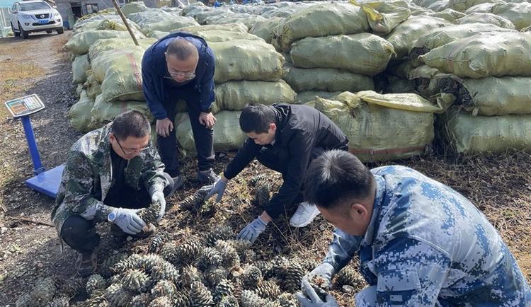 作为红松球果害虫防治试点单位,临江林业局不断探索科学有效的防治方法。根据2020年红松球果害虫防治试点工作中存在的问题,临江林业局重新规划了试验地块,并微调了防治药剂药量配比及防治措施。在实地调查中,工作人员严格按照《临江林业局红松球果害虫防治试点实施方案》要求,清点随机选取的红松球果归堆总数量,逐一观察球果是否有虫孔、虫粪、流脂状况,查点有被害状球果数量,计算球果被害率,并对调查数据进行了详细记录。