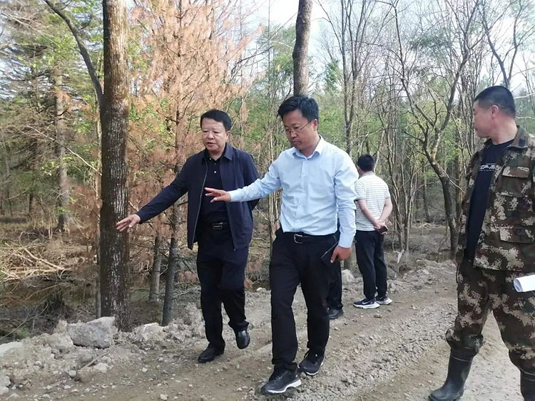 调研组深入到公司辖区内松材线虫病疫情防控重点地段,特别对沈白高铁建设工程项目施工现场高铁道路两侧的枯黄枯死松树进行仔细勘查,在春季松材线虫病普查重点地段查看松材线虫病调查监测情况。