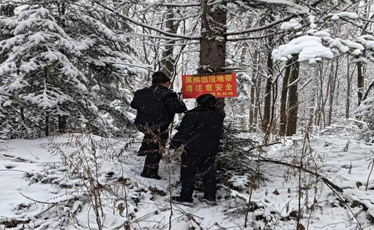 近日,松江河林业公司曙光林场3号线林区内发现两只黑熊出没,为确保辖区内入山人员人身安全,在林场3号线附近悬挂“黑熊出没地带请注意安全”“附近有黑熊出没 请勿在该地长期逗留”“‘偶遇’野生动物 请勿上前挑逗”等警示牌,提醒来往人员,以免受到伤害。