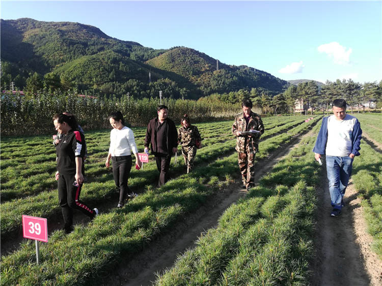 在现地查验过程中,验收组详细了解了生长性状优良的红松家系实生苗培育技术;结实性状优良的红松无性系嫁接苗嫁接、定植技术。在临江林业局种苗繁育公司苗圃生产区二大区,实地抽查了项目区内17个无性系良种苗木单位面积产苗量、成活率、苗木质量等相关基础数据。随后分别到桦树林场推广项目实施地点12林班9小班,5林班18作业区1小班,5林班18作业区2小班,6林班6、7、8、9小班现地核查了结实性状优良的红松经济果林17个无性系定植株数、规模面积和移栽定植成活率。