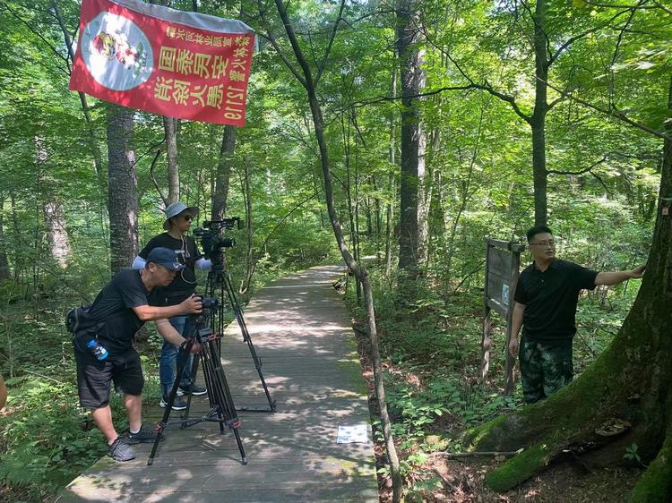 摄制组先是深入长白山古树公园录制生态研学课程。讲解员详细讲解了长白山古树公园历史背景及中草药知识,重点对露水河地区人参文化进行了讲解。下午摄制组一行人到新兴林场食用菌研学基地,对黑木耳生产加工车间、人参种植基地、森林消防器具库和养蜂基地进行录制,讲解员全面细致的讲解黑木耳发展史、食用菌生产流程和森林消防知识,同时对人参采挖过程、蜂蜜加工过程和森林消防器具使用方法进行了演示。