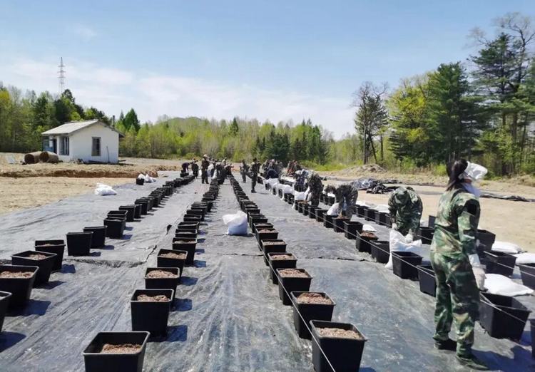 5月10日,松林公司组织机关、基层干部职工来到板石河林场基质蓝莓基地进行栽培作业,将袋装蓝莓基质倒入栽培盆中,再按照规定的行距、间距将基质栽培盆摆放到铺设好的地布上。公司党委书记、董事长、总经理黄吉文等领导现场了解作业情况和技术困难,帮助解决实际问题,动员全员积极参与基质蓝莓生产建设,使之成为增收途径。