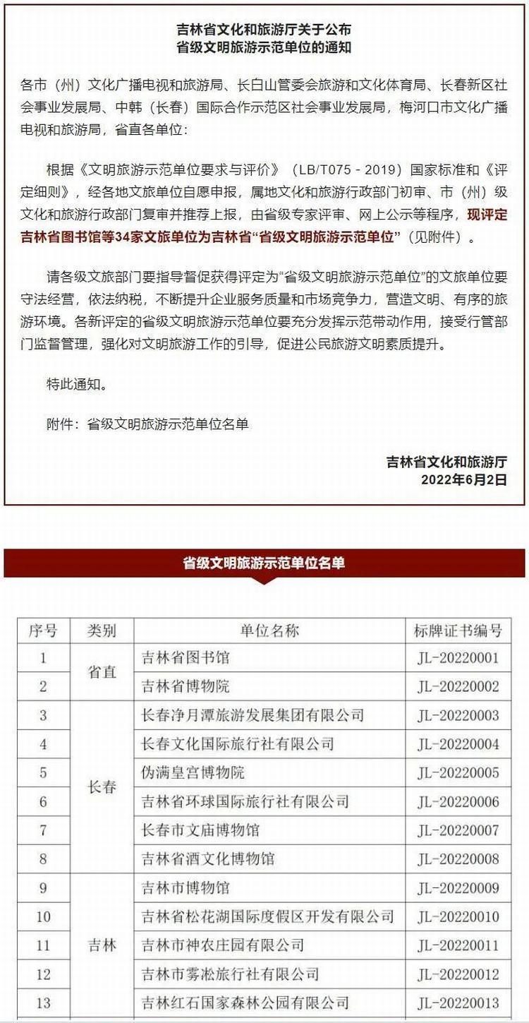 日前,红石国家森林公园与长白山国际旅游度假区、伪满皇宫博物院、查干湖生态旅游集团等34家省内知名景区共同登上“省级文明旅游示范单位”荣誉榜单。