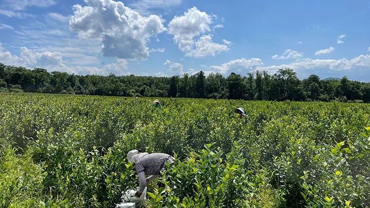 据了解,槽子河林场蓝莓基地内现有北极星、北蓝、北陆等蓝莓品种,目前采摘的果实主要以北极星为主,采摘期预计将持续到8月中旬左右。