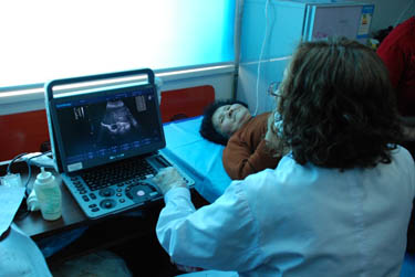 专家们耐心地为村民检查并解答疑难 红石林业局工会在局职工医院选调了内科、外科、妇科等骨干医生组成健康体检医疗服务队,辗转5个多小时来到龙坪村,除为村民提供健康咨询服务外,还为村民进行了心电、血压、血糖、彩超的检测,同时,向贫困村民赠送了5000元日常所需药品。
