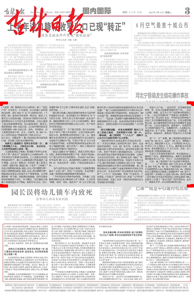 今年,国家下达东北林区全面禁伐的大政方针,这无疑让人们对吉林森工集团未来的发展捏了一把汗。常言道“靠山吃山,靠水吃水”,全面禁伐之后,靠森林吃饭的吉林森工集团将何去何从? 然而,当记者走进长白山莽莽林海、远赴洞庭湖畔的孤岛森林、湖北随州的大型厂房之后,却是惊喜一个更胜一个!行程结束后,记者终于长出了口气,原来森工集团早已高瞻远瞩、未雨绸缪,布局筹划久矣!且听记者娓娓道来。 山中何止林,林又何必伐:矿泉水、林下作物、旅游开发......长白山森林的宝藏尽可开发,多种产品,多种模式...森工集团将战略转型进行到底。 国家实行东北林区全面禁伐的政策,旨在让长白山、兴安岭的原始森林得以休养生息,福泽子孙。这也意味着昔日“把树放倒就赚钱”的日子一去不复返,对森林工业企业的生存发展提出了新的挑战。森工集团若是重“工”不重“森”,必然竭泽而渔,走不长远。而吉林森工集团早已未雨绸缪,让转型来得自然而然,水到渠成。 长白山脉绵延不绝,茫茫无边的林海郁郁葱葱。记者一行驱车数小时,前往原始森林深处的一个传奇处所,全国乃至世界上最好的天然矿泉水就产自这里——泉阳。专家论证,世界最好的三大天然矿泉水源地分别是阿尔卑斯山、高加索山和长白山,而长白山天然矿泉水则可博得优质泉水之冠。 泉阳泉早在2002年便已创立,在产品打入主流市场,品牌树立的时期,企业一直亏损,直到近几年才开始盈利。用泉阳泉饮品有限公司董事长王作臣的话来说,就是“决策者有长远的战略眼光”。多年来,森工集团决策者看到了长白山矿泉水的光明前景和巨大潜力,顶住重重压力,用十年的亏损培育了“泉阳泉”矿泉水品牌,如今其利好效应不仅扭转了亏损颓势,且一路向好,前途不可限量!近三年来,泉阳泉飞速发展,终于成为森工集团将来发展的支柱型产业之一。“现在想重新打造一个‘泉阳泉’的品牌,不投30亿是根本做不到的!这也是我们坚持做好产品的回报。”王作臣说。 泉阳泉的规划令人振奋:从今年开始到2020年,要把现在的产能以翻倍的形式扩张。截至今年六月份泉阳泉已经卖到50万吨,产能到年底是170万吨。到2020年时,泉阳泉将具备1000万吨的产能,销售500万吨以上,力争达到700万吨。这是一个巨大的跃升:届时,泉阳泉的销售收入可能是50亿到70亿左右...... 精彩的又何止泉阳泉!森工“绿色产业”方兴未艾,大有前途。以吉林森工泉阳林业局为例,该局2014年12月与泉阳泉合作,成为转型发展第一林业局,解决了大量富余人员就业问题,该局局长马德林告诉记者,泉阳林业局大力开发生态景观资源,目前已建设了抚安原始森林群落、高山湿地花园、观景台、观景桥绵延3000余延长米,长白山环路至抚安景区刚性路面4300余延长米。此外,全民创业,员工积极发展林下参、灵芝、天麻等,仅2014年,员工自营经济总产值就达到了6700余万元! 以小见大,以微知著 !森工集团制定的全面发展计划,看来森工的好戏才刚刚开始。 南林北工强强联合优势互补更进一步:森工集团魄力十足,大胆走出吉林、走出东北,又为转型发展画上浓重一笔。 人造板集团是吉林森工集团旗下的拳头企业,其生产的“露水河”刨花板早已名扬海内外,而今年国家对天然林全面禁伐,让人造板企业因原料短缺而停产,森工人造板集团自然也遇到了这个难题。走出去!找机会!求发展!森工集团大刀阔斧,逐鹿中原,挺进江南,于是乎,“吉林森工”的金字招牌便在湖南、湖北、河北、四川熠熠生辉! 洞庭湖是国家重点的速生丰产林聚集地。记者搭乘快艇一路飞驰,洞庭湖绿意融融,这些受湖水滋养的杨树枝干茁壮,叶片嫩绿。“这里都是吉林森工集团的速生丰产林地,面积有63万亩,活立木蓄积580万立方米,主要分布在益阳、长沙、常德、岳阳等地......”随行的吉林森工湖南益阳森华林业公司总经理位俊波告诉记者,南方的速生丰产林每年有10个月的生长期,培育五到七年便可成材!而东北严寒,相似的树种大约十五年方可砍伐利用,树木的再生周期和轮伐周期较之南方太长,生产效率不可同日而语。 林木资源有了,生产能力更强!南方企业的技术水平和生产能力非常强悍,记者在湖南益阳,湖北石首、随州的所见所闻印证了这一点:湖南森华木业采用世界上最先进的德国辛北尔康普公司连续平压薄板生产线,年设计产能25万立方米中高密度纤维板,从坚硬的鞋跟材到几毫米后的电子线路板垫板,都可以生产,填补了湖南省省内无高端纤维板生产线的空白;湖北人造板公司产能最大,湖北石首的吉象公司的三条德国顶级密度板生产线一眼望不到边际,年产能力是省内企业的数倍,其高端产品市场占有率达到60%以上;湖北随州的人造板公司占地430亩,设备是世界一流的,产能也是湖北最大的......如今这些企业已经被吉林森工人造板集团收编为“五虎上将”,好似“八仙过海,各显其能”,为森工集团的发展提供源源不断的能量。 “今年国家对天然林全面禁伐,吉林森工人造板集团拟在原来并购基础上扩大投资,大力发展‘林板一体化’项目,现在年产40万立方米人造板项目和工业原料用材林基地建设项目正在全面实施!”森工人造板集团董事长田予洲告诉记者。 随着森工集团对整个资源的掌控,如果达到了500万亩地产能,那根据林地的亩数他们还要建若干的工厂,“这是森工集团整个