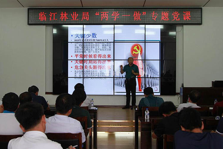 为推动“两学一做”学习教育深入开展,8月12日,临江林业局邀请中共白山市委党校哲学教研室主任、经济学教授李忠东来到临江,在临江林业局会议室为大家上了一堂生动的“两学一做”专题党课。临江林业局党委书记、局长陈志等局领导,全局中层以上领导干部及党委(纪委)工作部全体党员参加了学习。 党课上,李忠东以《深入学习<党章>,做“四讲四有”的合格党员》为题,从正确认识党章及其重要作用、党章的基本结构和内容、贯彻党章,在全面从严治党中做合格党员等几方面为大家进行了深入细致的讲解。他还结合近期学习党章党规和习近平总书记系列讲话的心得,与全体党员分享了“两学一做”学习教育的重要意义和深刻内涵。引导大家在当前的形势下,要讲理想有信念、讲规矩有纪律、讲道德有品行、讲奉献有作为,强化宗旨意识,做一名合格的共产党员。经过一个半小时图文并茂的讲解,使参加学习的党员干部对党章有了更深入的理解,对自己如何做一名合格的共产党员有了进一步的触发,更加坚定了自己的理想信念。