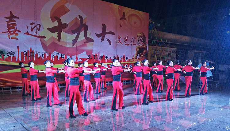 演出共分为三场,26-27日前两场由该局及江源区各社区文艺队表演广场舞。32个文艺队参加了表演,有的打腰鼓,有的表演武术,有的跳华尔兹,展现了广场舞的多元特色,以全民健身的方式促进了林区健康。演出当天,天公不作美,绵绵细雨下个不停,可参加演出人员的热情不减,其中还有十几位年近八旬的演出人员,表演一直冒雨进行,他们的精神,深深感动了在场的每一位观众。