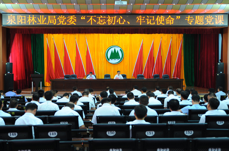 按照“不忘初心、牢记使命”主题教育活动安排,结合中央、省委和集团党委从严治党总要求,8月8日上午,泉阳林业局党委书记、局长胡建荣在机关一楼会议室讲授“不忘初心、牢记使命”主题党课,局党政领导、副处级以上中层干部、机关全体党员以及泉阳森林公安分局领导班子参加党课学习。
