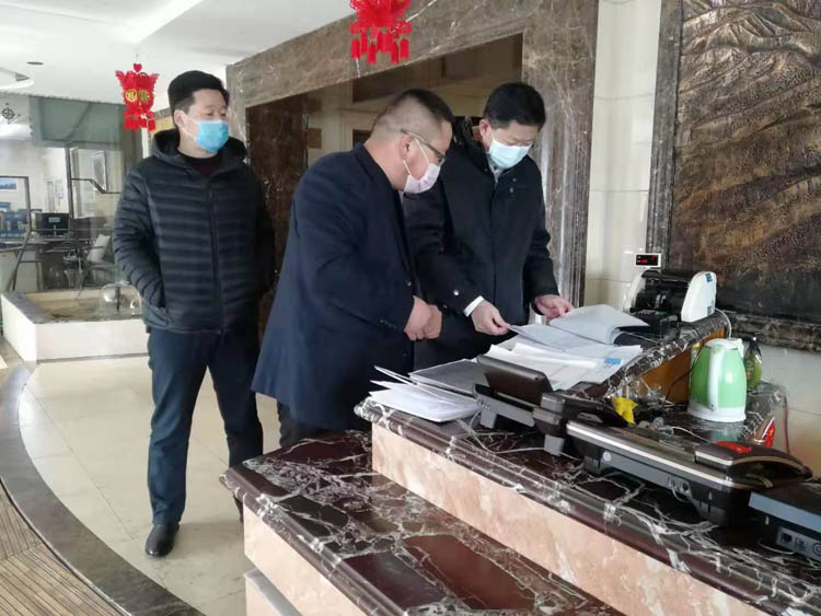 在宾馆,赵伟详细查看了入住人员登记、通风消毒、体温监测等记录,并指出,当前是阻断疫情蔓延扩散的关键阶段,宾馆作为经营场所,要不折不扣落实好疫情防控各项措施,要让每一位员工深入了解新型冠状病毒的传播途径,做好防护工作;每日对入店客人和在岗职工测量体温,做好登记备案;要求全员佩戴口罩上岗,定期对宾馆公共区域进行全面消毒,加大对客房及员工区域通风和消杀频率;餐厅除提供疫情防控人员送餐外,停止一切对外经营活动,全力做好疫情防控工作。