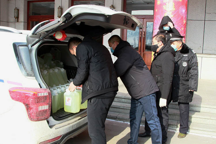 在临江林业局办公楼前,安华保险临江支公司总经理于洪彬带领工作人员开车送来了10斤装的84消毒液50桶,临江林业局综合办公室工作人员同保险公司人员一道将消毒液卸车入库。于洪彬表示,安华保险临江支公司同临江林业局有着业务合作伙伴关系,在这场突出其来的疫情阻击战中,临江林业局各林场和相关部门的同志们仍然在疫情防控一线坚守岗位,守护林区职工群众的平安,安华保险临江公司为尽绵薄之力,多方筹集到了一批84消毒液给企业疫情防控工作送来一份爱心和支援。
