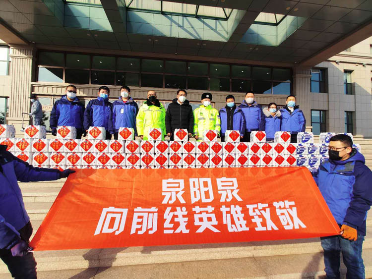 “泉阳泉,向前线英雄致敬”系列活动的第六站,吉林森林工业股份有限公司总经理兼泉阳泉公司董事长王尽晖、吉林森工集团泉阳泉饮品有限公司党委书记兼总经理黄硕率队来到了长春市公安局交警支队,为奋战在长春市内抗疫一线的交警同志们捐赠泉阳泉天然矿泉水以示慰问,向这群战斗在疫情防控一线的交警们致敬!受到了市交警支队政委黄维国、政工处处长白杨等公安干警,出面的热情接待并给予高度评价。!