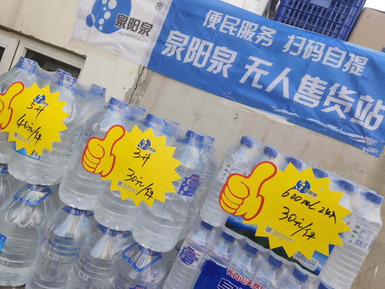 “一方有难,八方支援”,从来都不是一句空话。最美逆行者、跨越千里的医疗队伍、捐赠物资车队赶往重度疫情区的画面,激励着每一个人。那些暖心的守护,也来自大时代下的无数个小我。之所以能让大家心连着心,只因彼此的信任和发自内心的善良。 2020年初的这场疫情,困住了人们出行的脚步,快速运转的城市被按下了暂停键,但生活依旧要继续。受交通等限制,非常时期,购物十分不便。为了方便居民购物,泉阳泉启动了“无人售货站”活动,陆续将在长春百余个小区中发起社区便民服务。将泉阳泉天然矿泉水放置在无人售货点上,现场没有工作人员,只是张贴了二维码,居民扫码自提。
