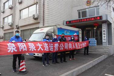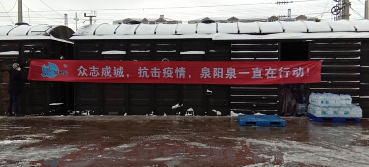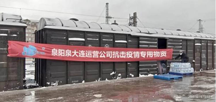 病毒无情,森工有爱! 春节本应是辞旧迎新、阖家团圆的时刻,但那些奋战在抗击疫情一线、放弃假期坚守在医疗工作岗位上的前线英雄们,他们用‘舍’和‘守’撑起百姓的安康,为人民的健康保驾护航。”吉林森工集团泉阳泉饮品有限公司以力所能及的方式,与前线的英雄们心连心、共进退,将泉阳泉天然矿泉水送至一线各单位。用实际行动投入到抗击疫情的战役中,与最美的“逆行者”同行!泉阳泉大连运营公司第一时间响应总部号召,疫情期间,风雪无阻,运用铁汽联运的方式以最快的速度、最短的时间向大连市民送去生活用水,与人民同在,并协同合作伙伴向社会提供必要支持。