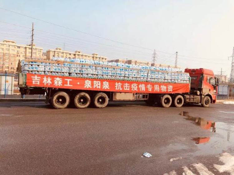 心连心抗疫,泉阳泉在行动! 2020年农历庚子年初,一场突如其来的新型冠状病毒肺炎疫情牵动着国人的心。吉林森工集团泉阳泉饮品有限公司启动“向前线英雄致敬”系列活动,为遏制与抗击新冠肺炎疫情的前线英雄们送上祝福,全国公路物流瘫痪,为保障大连人民疫情期间生活用水,吉林森工用铁路专列向大连输送泉阳泉矿泉水。