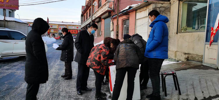 为守住前沿关口,守护健康安全,共同担负林区疫情防控责任,自2月11日起,露水河林业局组建了200余人的志愿者队伍,援助地方政府设立的10个居民小区防控卡点开展工作,并在4个林场出入口设立了防疫检查点,对出入人员和车辆进行信息登记,及时排查、上报外来人员,坚决防止疫情由外部输入。 在各执勤卡点,赵伟随机查看排查登记表,现场督导执勤人员开展工作,并详细了解各卡点的任务形势、人员分配、作息时间和就餐取暖等情况。他对执勤人员吃苦耐劳、坚守岗位、甘于奉献的精神给予充分肯定,同时叮嘱检查值守人员注意保暖,做好自身防护。