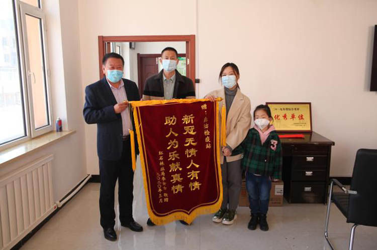 “疫情期间是你们舍小家为大家冲锋在前,保障大家的生命安全,真挚的服务百姓,我在这里真诚感谢你们的付出!”4月1日,河北省到红石林业局探亲人员李女士带着一面印有“新冠无情人有情 助人为乐献真情”的锦旗来到森林病虫防治检疫站,对疫情期间放弃休假、不分昼夜、热情服务百姓的森林病虫防治检疫站干部员工表达衷心感谢。