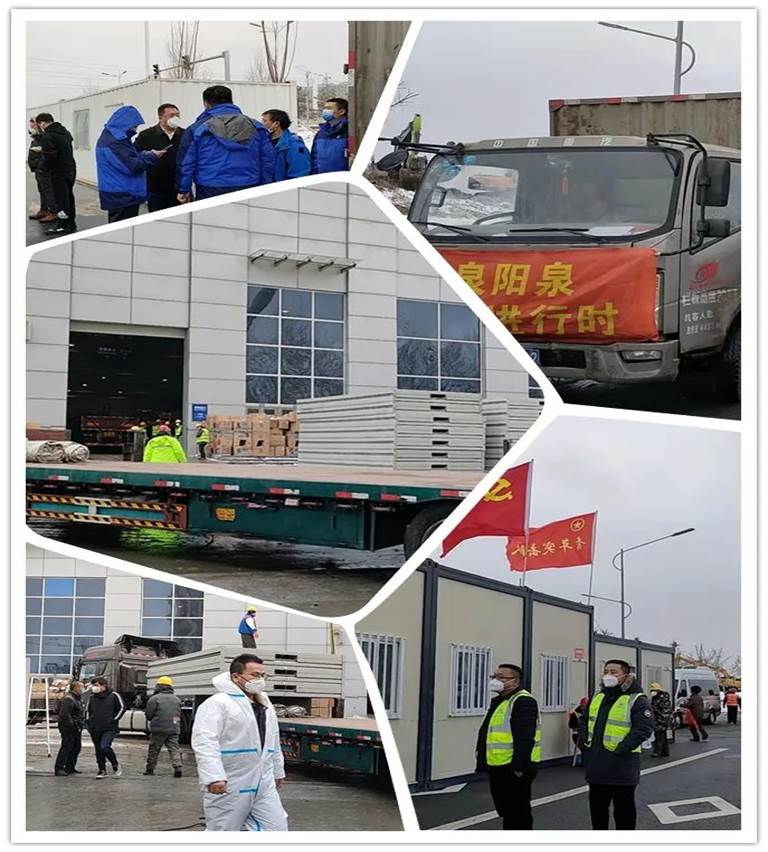 ▼一座座被视为“生命之舱”的方舱医院,正在争分夺秒地建设中,泉阳泉将千余件抗疫用水送至各个施工现场,向所有方舱基建英雄表达最崇高的敬意。