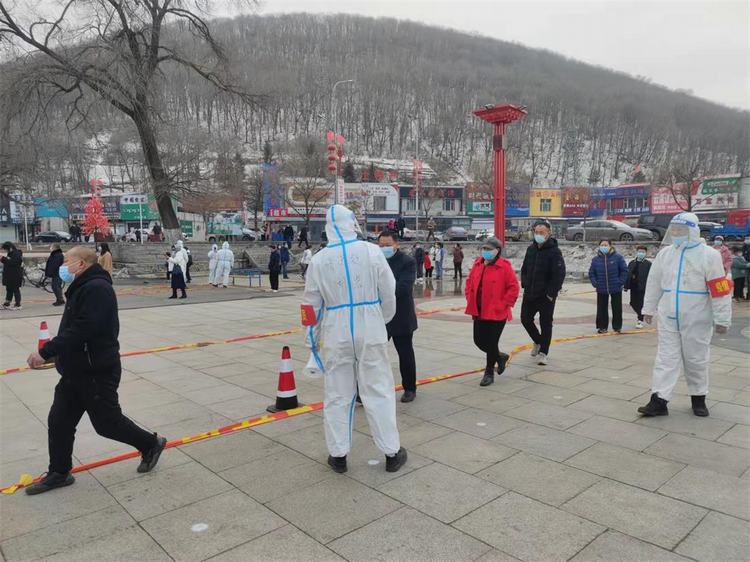 该局森林资源和环境保护管理处工会负责人带领10名疫情防控工作经验丰富的职工,身穿白色防护服,佩戴蓝色口罩和红色袖标,往返于核酸检测现场,积极配合医务人员和公安民警维持现场秩序,提醒待检群众戴好口罩,出示吉祥码或本人身份证,要求受检人员服从现场安排,不扎堆、不聚集,保持一米线距离,自觉遵守公共秩序。